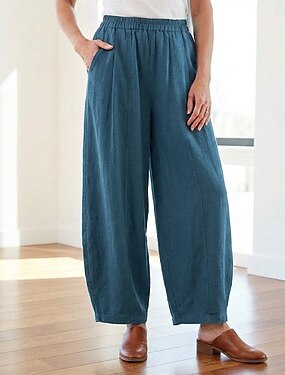 Dame Linbukser i bomull kinesisk Sommerbukser Bloomers Ferie Gatemote Grunnleggende Full lengde Middels midje عادي Lomme Elastisk midje Komfort Bekvem Uelastisk Daglig utendørs Feriereise Sjø bl