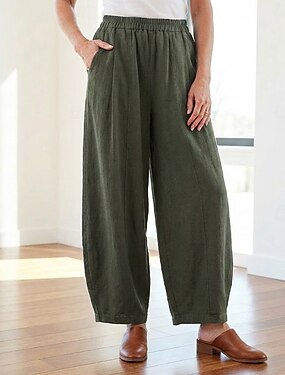 Dame Linbukser i bomull kinesisk Sommerbukser Bloomers Ferie Gatemote Grunnleggende Full lengde Middels midje عادي Lomme Elastisk midje Komfort Bekvem Uelastisk Daglig utendørs Feriereise Sjø bl
