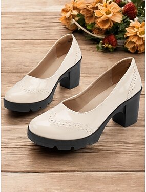 kvinners lakken plattform chunky hæl pumps med brogue detaljer, vintage-stil kjole sko for kontor, fester og formelle arrangementer