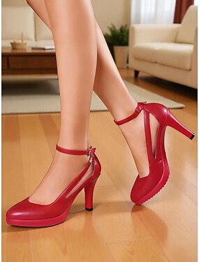 røde høye hæler i lakken for kvinner – sexy stilettopumps med trippel ankelspenner for utelivsfester og klubbklær