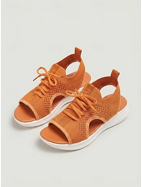 oransje damesandaler med snøring – pustende strikket overdel, lette tursandaler med åpen tå for sommer og reiser &fritidsklær
