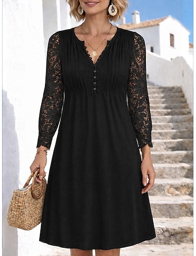Dame Mini kjole Kjole med A-linje Sommerkjole Fritid Daglig Normal عادي Langermet V-hals Svart Sommer Vår
