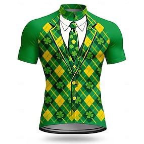 Herre St Patrick Jersey Sykkel Jersey Shamrock Nyhet Korte Ermer Sykkel Tee T skjorte Topp med 3 Baklommer UV Motstandsdyktig Rask Tørking Med Lommer Front Glidelås Sport Grønn Bekledning