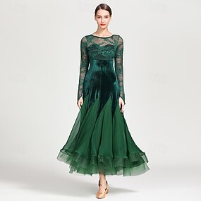 Ballroom-dans Kjole Appliqué Kombinasjon Dame Trening Ytelse Langermet Naturlig Chiffon Blonder Fløyel