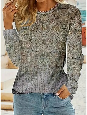 Dame Bluse Trykt mønster Blomstret Grafisk Paisly Årgang Tropisk Stilfull Langermet Crew-hals Vanlige topper Daglig Dusty Blue Vår Høst Vinter