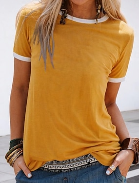 Dame T skjorte T-skjorter Fargeblokk Årgang Stilfull Klassisk Kortermet Crew-hals Rund hals Vanlige topper Daglig Ut på byen Gul Vin Marineblå Himmelblå lysegrå Sommer Vår
