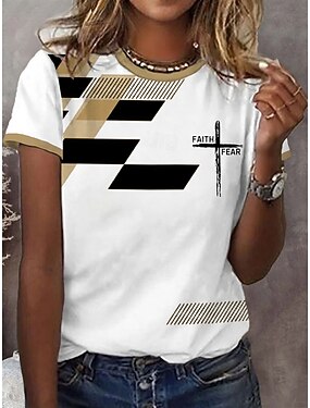 Dame T skjorte Trykt mønster Grafisk Geometrisk Bokstaver Årgang Stilfull Klassisk Kortermet Crew-hals Vanlige topper Daglig Helg Blå Rød Lilla Grønn Kakifarget Sommer Vår