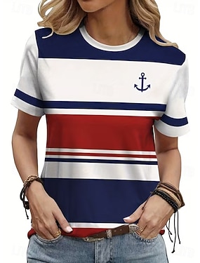 Dame T skjorte Trykt mønster Grafisk Anker Årgang Stilfull Klassisk Kortermet Crew-hals Vanlige topper Daglig Helg Blå Svart Hvit Sommer Vår
