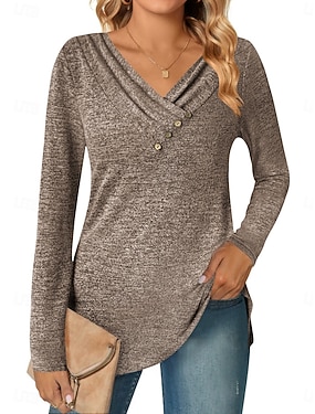 Dame T skjorte Knapper Asymmetrisk Helfarge Grafisk عادي Stilfull Fritid Kortermet Cowl-hals Vanlige topper Daglig Ut på byen Mørkegrå Sommer Vår