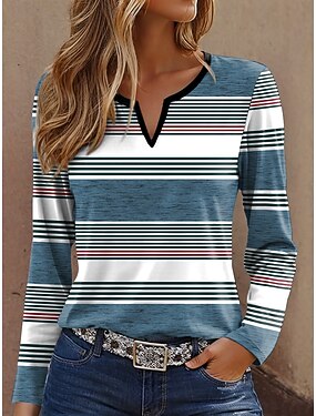Dame T skjorte Trykt mønster Grafisk Stripet Årgang Stilfull Klassisk Langermet Hals med hakk Vanlige topper Daglig Helg Blå Lilla Brun Grønn Vår Høst Vinter