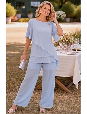 Dame Todelt sett Chiffon Kortermet Sommerfugl Firkantet hals Helfarge عادي Multi Layer Elegant Formell Bryllupsgjest Fritid / hverdag Blå Himmelblå Sommer Normal
