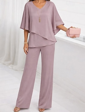 Dame Bluse Buksesett Bukser med brede ben 3/4 ermer V-hals عادي Drapering Mote Gatemote Daglig Avslappet Daglig Bryllupsgjest Rosa Lilla Kakifarget Vår & Vinter Normal