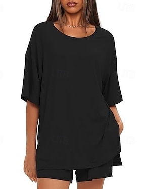 Dame Todelt sett Shortssett Kortermet Rund hals عادي Mote Gatemote Avslappet Daglig utendørs Svart Brun Sommer Normal