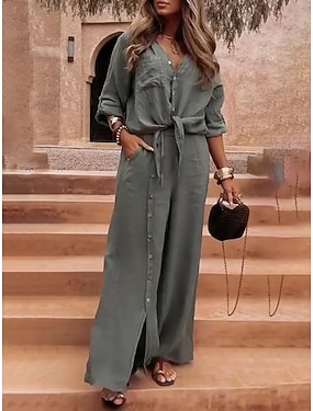 Dame Buksesett Langermet Skjortekrage Helfarge Mote Gatemote Avslappet Daglig utendørs Hvit Militærgrønn Brun Sommer Løstsittende