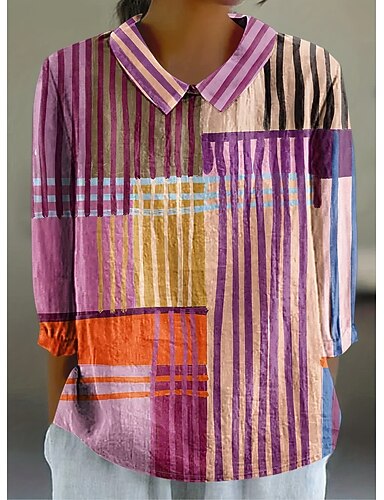 Dame Bluse Knapper Trykt mønster Nyanse Grafisk Geometrisk Årgang Daglig Stilfull Langermet Skjortekrage Vanlige topper Daglig Fuksia Oransje Beige Sommer Vår