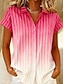 Dame T-skjorte Ombre Grafisk Abstrakt Elegant Vintage Stilig 3/4 Lengde Ermer V-hals Lange Topper Daglige Gå ut Knapper Blå Rød Oransje Grønn Sommer Vår Høst