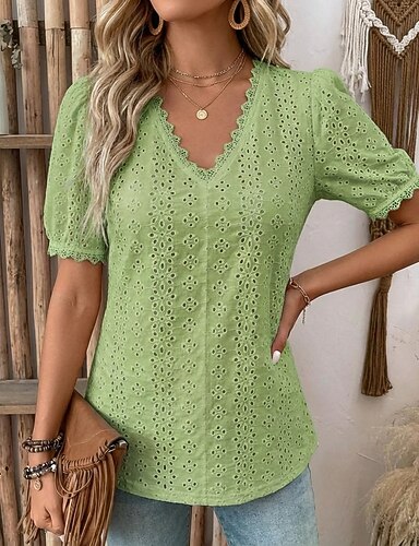 Dame Skjorte Bluse Blonde Helfarge Stilfull Fritid Kortermet V-hals Vanlige topper Avslappet Daglig Svart Hvit Rosa Lilla Oransje Sommer Vår