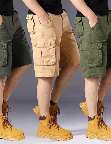 Herre Lastebukser Cargoshorts Shorts Casual shorts Multi lomme عادي Ensfarget Hurtigtørkende Knelengde utendørs Treningssenter Trening Sport Sportslig Svart Grønn Uelastisk