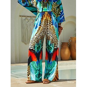 Dame Bred Bukseben Full lengde Sateng Bohem Ferie Avslappet Regnbue Sommer XS S M