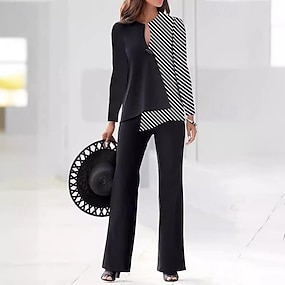 Dame Buksesett Bolero topp Langermet V-hals Stripet Mote Gatemote Avslappet Daglig utendørs Svart Vår Løstsittende