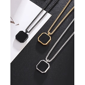 Herrekjede i rustfritt stål med svart firkantet anheng – minimalistisk geometrisk eskekjede i gull, sølv og svart, trendy tilbehør for daglig bruk, business casual og ferie