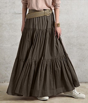 dameimitasjon bomull lin vintage sommer maxiskjørt ensfarget plissert rysjer ferie avslappet svart vin lilla brun høst bomull bomull og lin