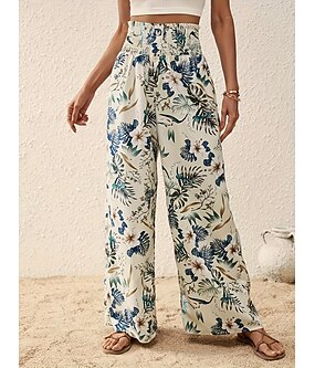 Dame Bred Bukseben Bukser Fritid hverdag Lang Blomstret Bred Bukseben Printer Pusteevne Bekvem Mikroelastisk Feriereise Helg Blå Rosa Navyblå Aprikos Vår sommer Normal
