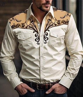 Herre Blomstret Western skjorte Trykte skjorter Langermet Årgang vestlig stil Dagligdagstøy Ut på byen Helg Vår sommer Aftæpning Lomme Trykt mønster Knapp ned Blå Lyseblå Hvit Rosa Grønn