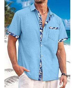 Herre linskjorte Strand Klær Hawaii skjorte Skjorte med knapper Aloha skjorte Hawaii Feriereise Avslappet Blå Kortermet Aftæpning Sommer Vår Klær Blomster