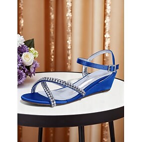 Blå damesandaler med strass - elegante hæler med åpen tå og ankelremmer for fest og kveldsarrangementer