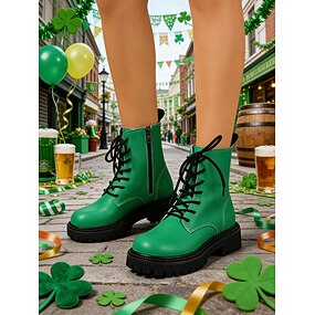 Grønne snørestøvletter til dame med St. Patricks dag-vibe – stilige, slitesterke støvletter med solide såler, ideelle for parader, utendørs St. Patricks dag-feiringer og festlige eventyr