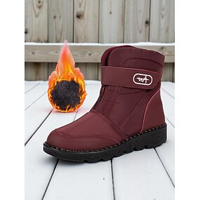 Damestøvletter med fleecefôr i burgunderfarge – vanntette, komfortable turstøvler med enkel glidelåslukking for snø, reiser og hverdagsbruk