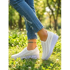 hvite pustende nettingsko til dame – lette, komfortable slip-on-sneakers, uformelle sommersko for reiser, turgåing, utendørs og hverdagsbruk