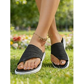Komfortsandaler med blomsterdekorasjon til dame – myke, avslappede sandaler med t-stropper for damer, flotte for hageturer, piknik og daglige ærender