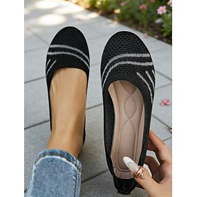 Svarte, myke strikkede ballerinasko til dame – pustende, lette og stretchy komfortsko for kontor, pendling, reiser, shopping og hverdagsbruk