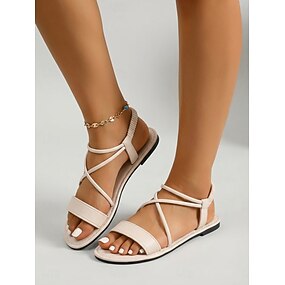 Hvite sandaler med stropper til dame – komfortable, flate sommersko med smale, kryssende stropper og elastisk bakside for strandferier og øyreiser
