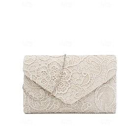 Dameclutch i blonde med kjederem, elegant blomsterdesign, tilgjengelig i flere farger for bryllup, fester og formelle arrangementer