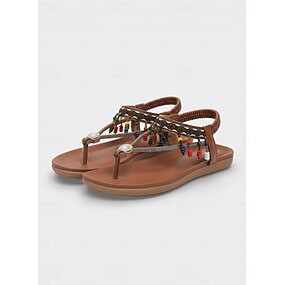 Bohemske sandaler med perler og ankelfrynser til dame – flate, komfortable sommersko til strand for ferie, resort, festivaler og uformelle reiser