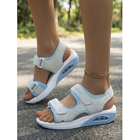 Komfortable sandaler med borrelås for kvinner – pustende hvite og blå sportssko med luftpute for turgåing, reiser og hverdagsbruk