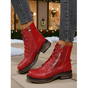 Røde julekampstøvler til dame – trendy snørestøvletter til dame – perfekt til julaften, vintermote og avslappet stil