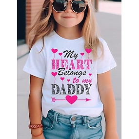 Jente 3D Hjerte Grafisk Bokstaver T skjorte T-skjorte Kortermet 3D-utskrift Sommer Vår Sport Mote Gatemote Barn 4-12 år Crew-hals Avslappet Daglig utendørs Normal