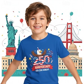 Gutt 3D Grafisk 250-årsjubileum T skjorte T-skjorte Kortermet 3D-utskrift Sommer Vår Sport Mote Gatemote Barn 4-12 år Crew-hals Avslappet Daglig utendørs Normal