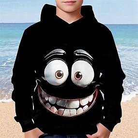 gutter tegneserie morsom smil ansikt hettegenser langermet 3D-trykk høst vinter mote gateklær barn 4-12 år hettegenser utendørs avslappet daglig normal passform
