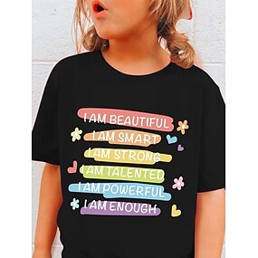 100 % bomull Barn Jente Svart Tekst T skjorte T-skjorte Crew-hals Kortermet Feriereise Sport & Utendørs Hverdag Mote Gatemote Fritid Printer Sommer