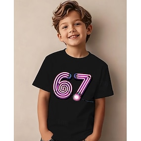Bomull Barn Gutt Svart Grafisk Morsom slang 67 T skjorte Bluse Crew-hals Kortermet utendørs Hverdag Mote Gatemote Designer Printer Sommer