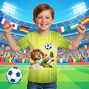 Gutt 3D Grafisk Løve Fotball T skjorte T-skjorte Kortermet 3D-utskrift Sommer Vår Sport Mote Gatemote Barn 4-12 år Crew-hals Avslappet Daglig utendørs Normal