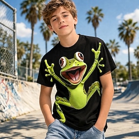 Gutt 3D Grafisk Dyr T skjorte T-skjorte Kortermet 3D-utskrift Sommer Vår Sport Mote Gatemote Barn 4-12 år Crew-hals Avslappet Daglig utendørs Normal