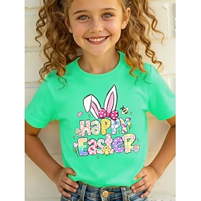 Påske Jente 3D Grafisk Kanin T skjorte T-skjorte Kortermet 3D-utskrift Sommer Vår Sport Mote Gatemote Barn 4-12 år Crew-hals Avslappet Daglig utendørs Normal