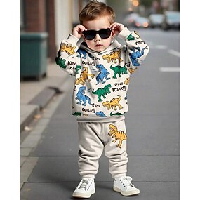 Gutt 3D Dinosaur Hettegenser og joggebuksesett Treningsdrakt Treningsdresser Langermet Vår Høst Daglig Grunnleggende Fritid Barn 4-12 år Med hette utendørs Feriereise Sport Skreddersydd