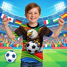 Gutt 3D Fotball T skjorte T-skjorte Kortermet Sommer Vår Mote Grunnleggende Barn 4-12 år Crew-hals utendørs Avslappet Daglig Normal